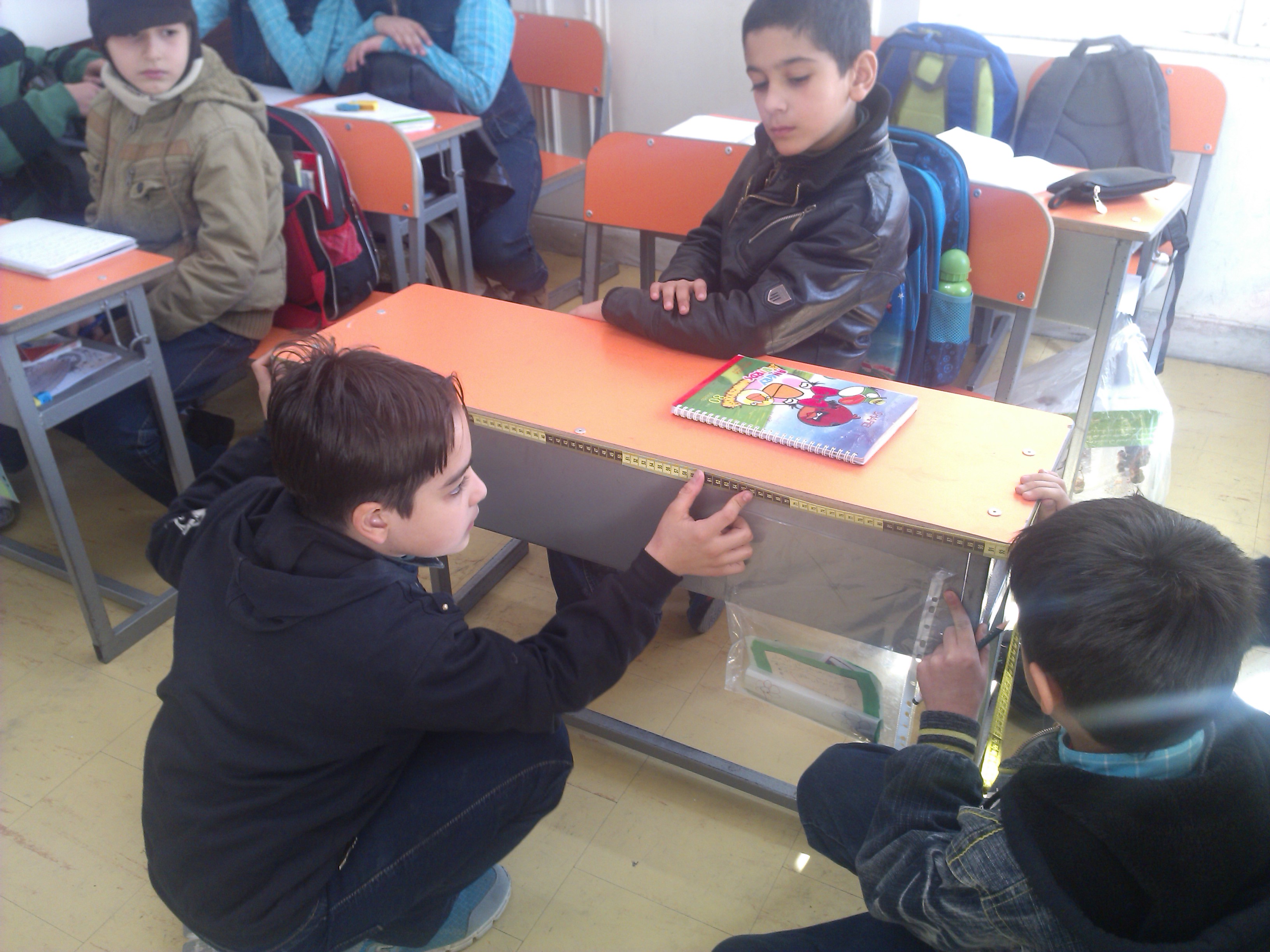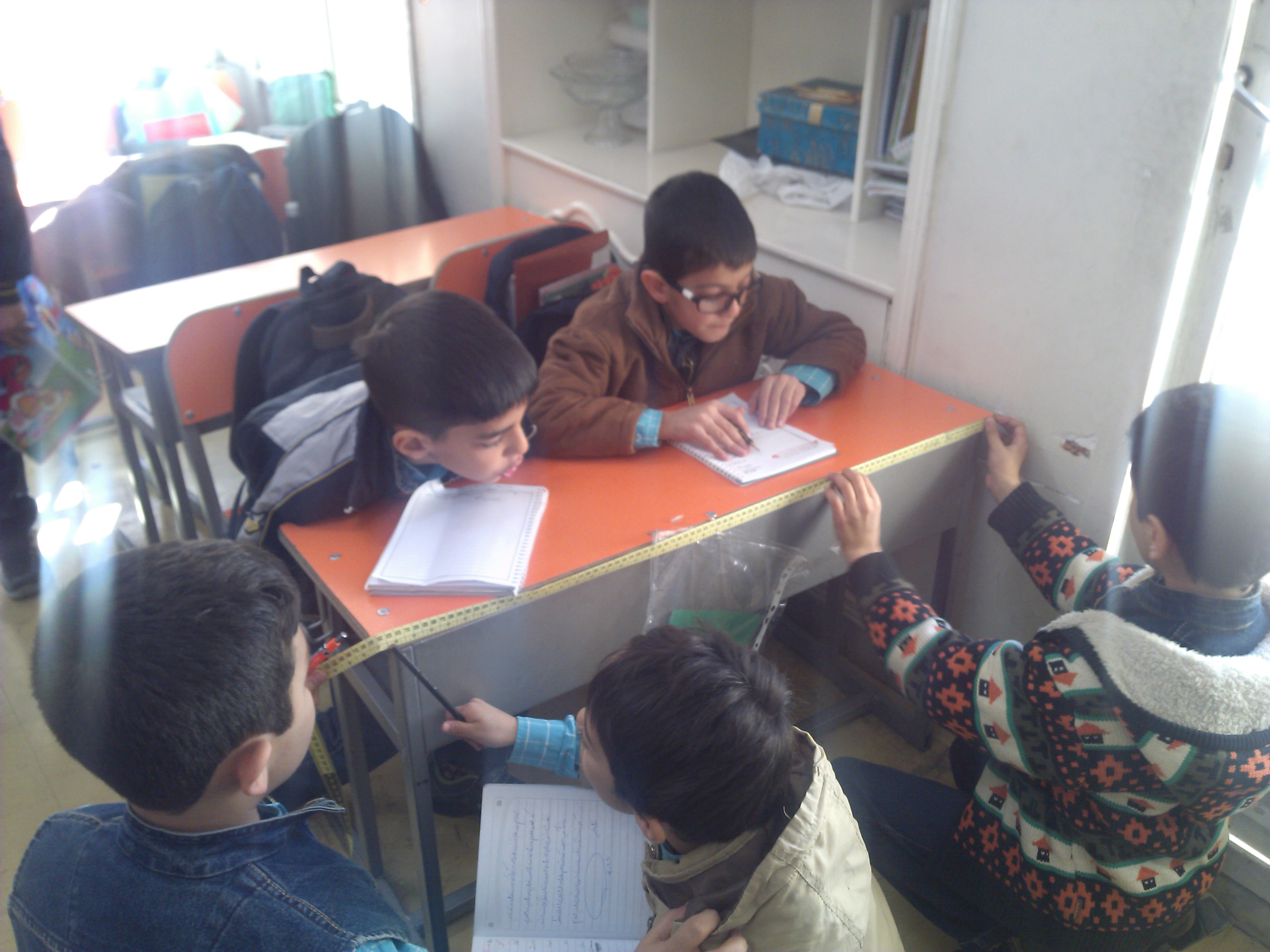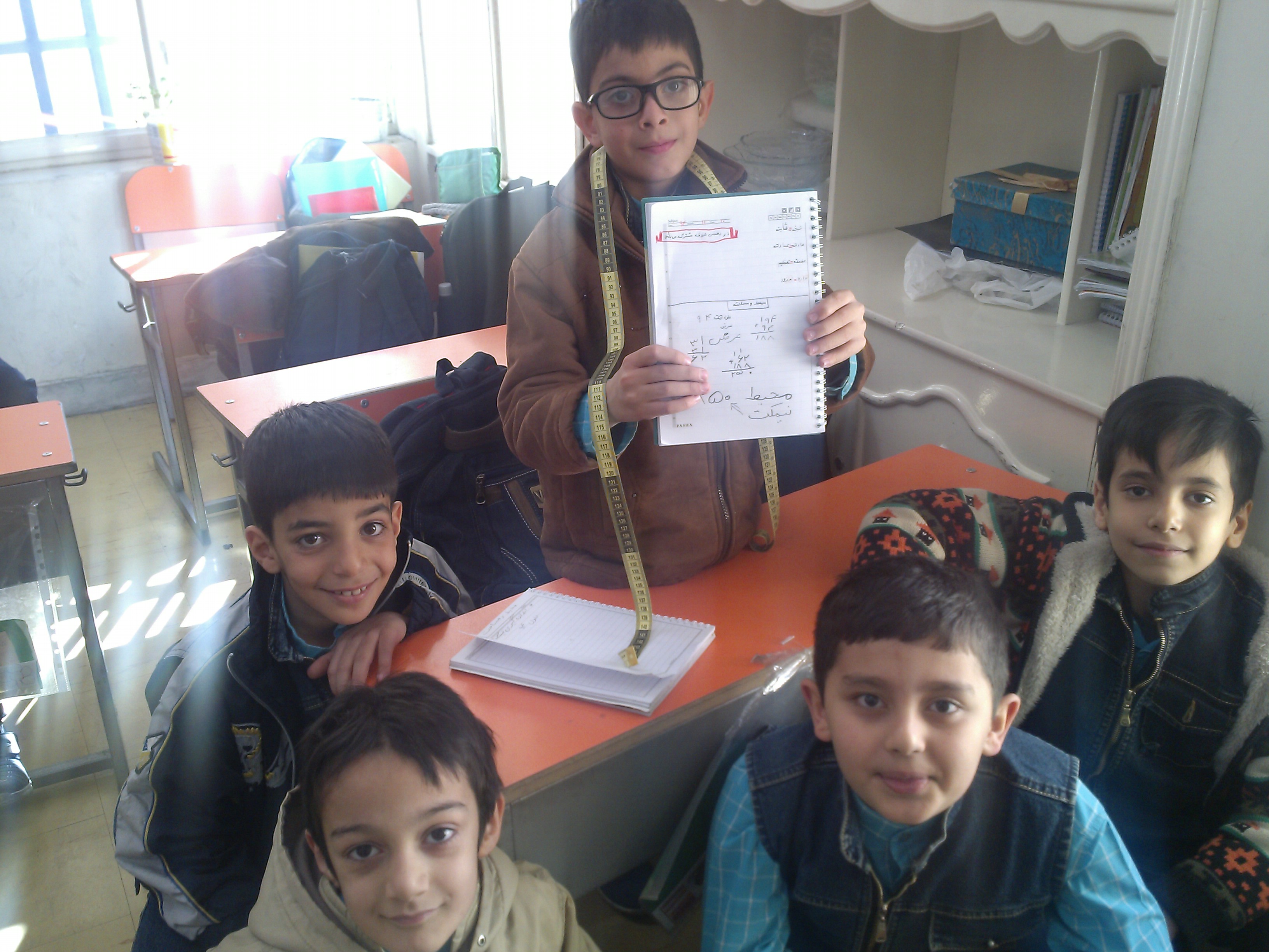 دانش آموزان با اندازه گیری طول و عرض نیمکت گلاس و حیاط مدرسه محیط را محاسبه کردند.