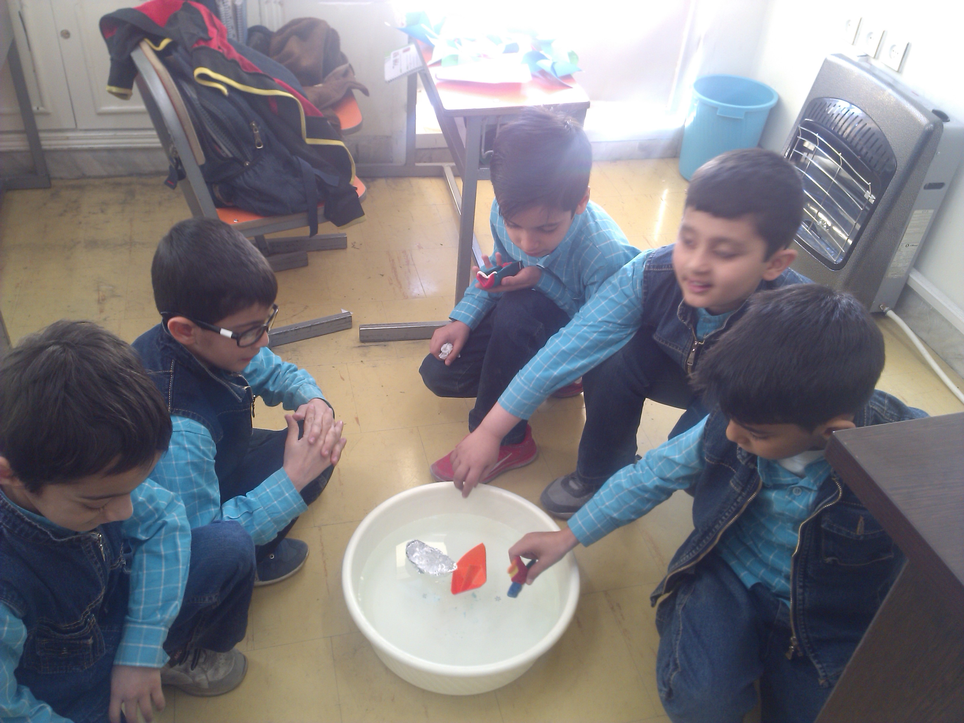 بچه ها با ساخت مدل های مختلفی در قالب قایق آلومینیومی ، قایق خمیری ، فرفره و ... با چهار اثر نیرو آشنا شدند.