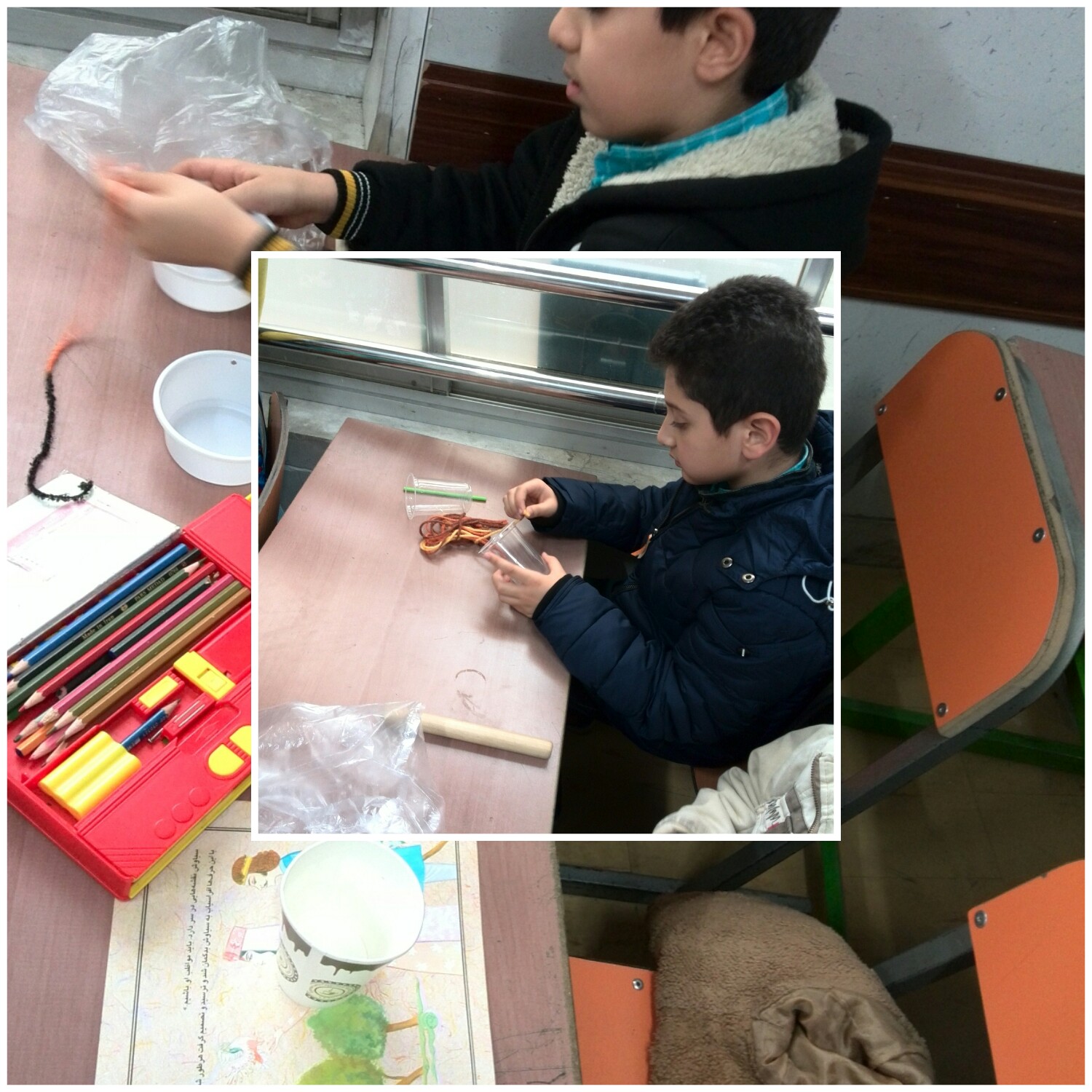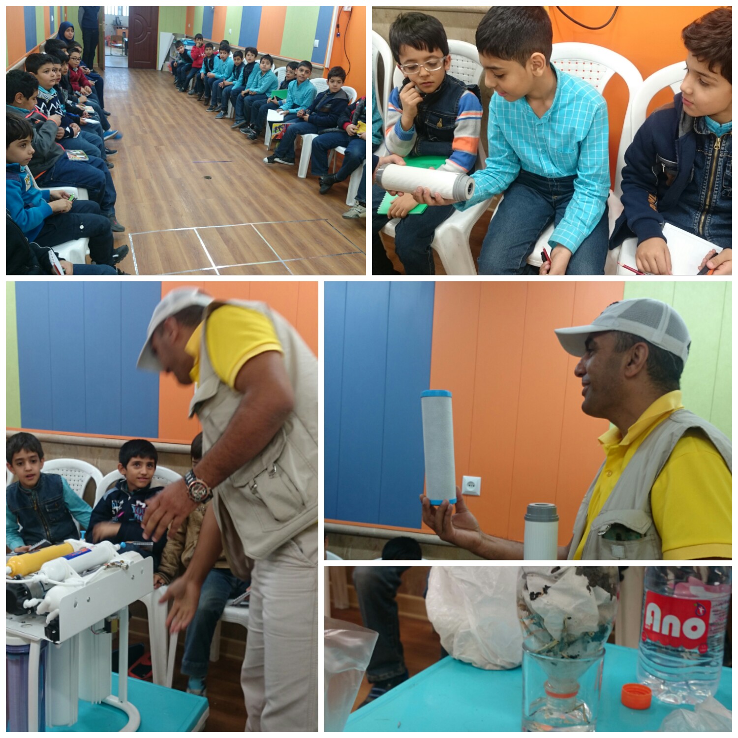ابتدا با توجه به درس اجتماعی (موضوع درآمد و شغل) بچه ها متوجه واژه شغل و چگونگی بدست آمدن درآمد شدند.سپس با کار پدر محمدمهدي آشنا شدند.وبا توجه به فصل 5علوم ( آب ماده با ارزش) توضیحاتی در زمینه ارزش آب قابل استفاده، صورت گرفت.و با توجه به فصل 6( تصفیه آب) ابتدا آزمایشی در زمینه تصفیه در زمان های پیش صورت گرفت و در نهایت دستگاه تصفیه آب و قسمت های آن معرفی شد.
