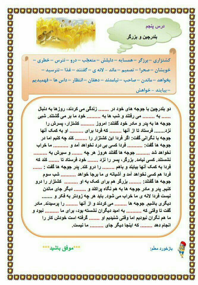 (دلبندم جملات زیر را بااستفاده از کلمات بالا کامل کن و به کلاس بیاور)