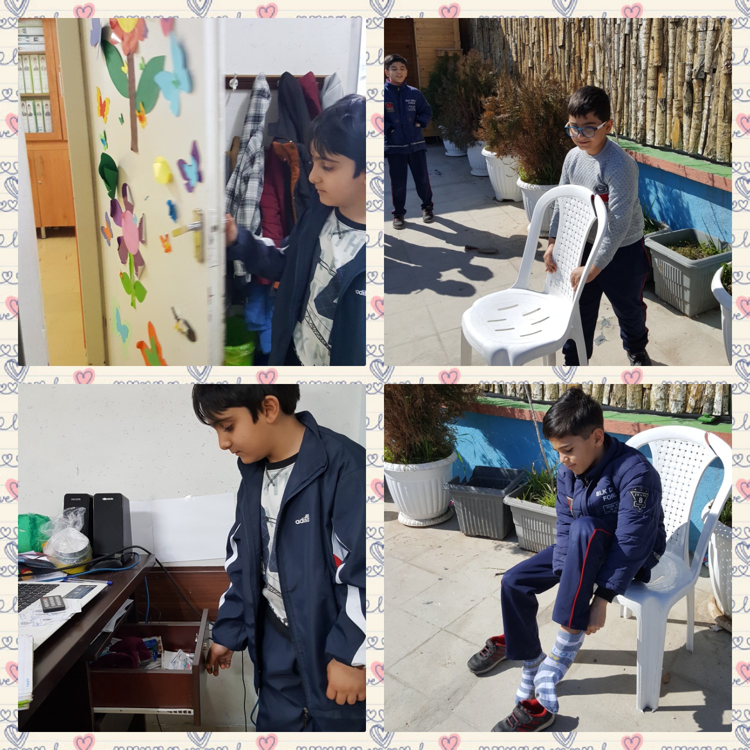 بستن در کشو - حرکت دادن صندلی به سمت جلو - بستن در - درآوردن جوراب: نیرو از نوع هل دادن